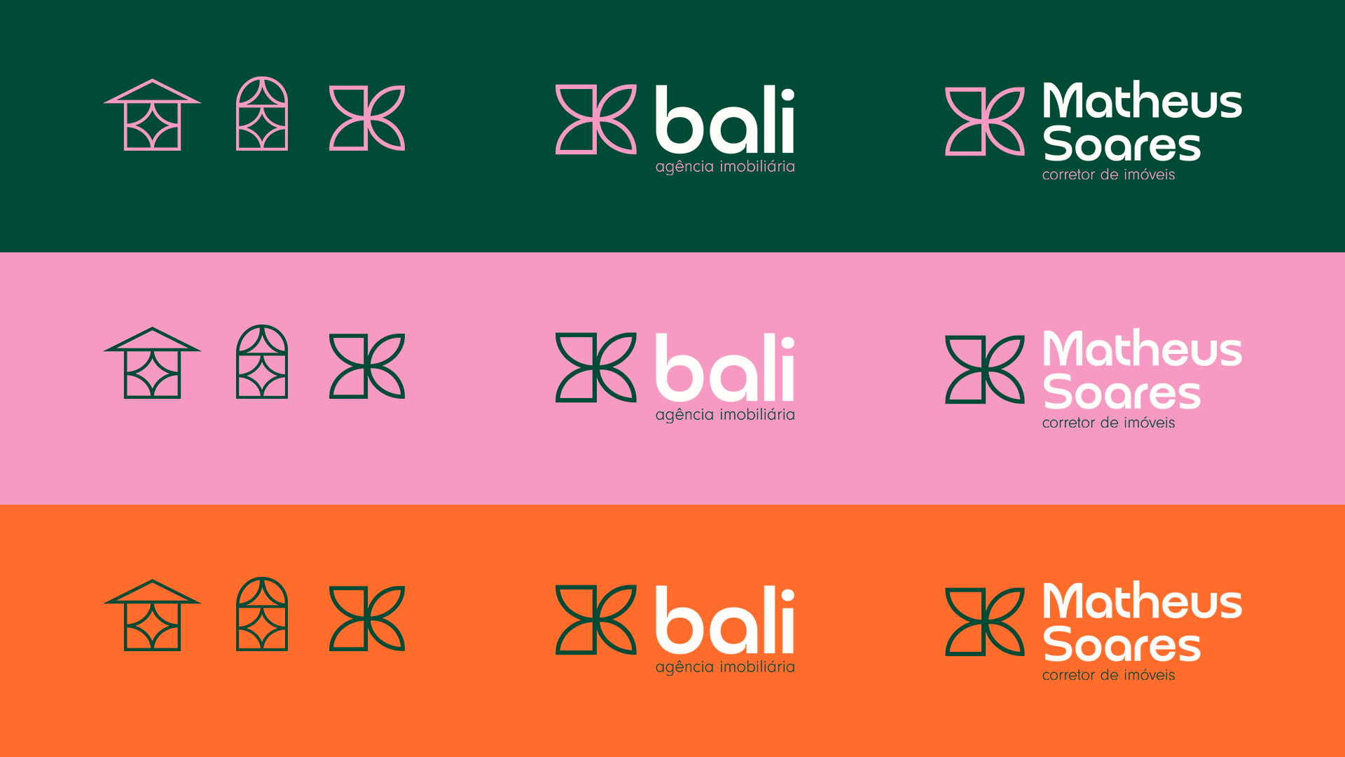 Identidade visual desenvolvida para o corretor Matheus Soares e agência imobiliária Bali.